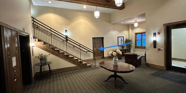 Unload all your ski gear here. To get in the Lodge use your code in the Virtual Doorman App, then use the key from the center island to get in the door, then use the code in the Virtual Doorman App to open the lock and get into the Ski Cage #107. See video below.